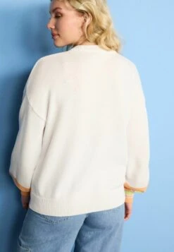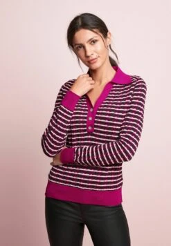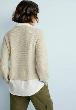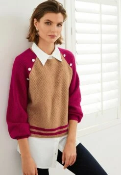 Next GEM BUTTON COLLAR SHIRT LAYER STANDARD – Strickpullover – Camel Brown Pink Colourblock