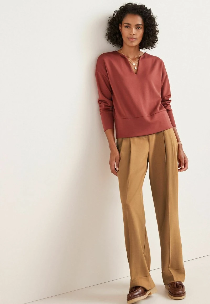 Next LONG SLEEVE SLINKY NOTCH NECK STANDARD – Sweatshirt – Rust Brown