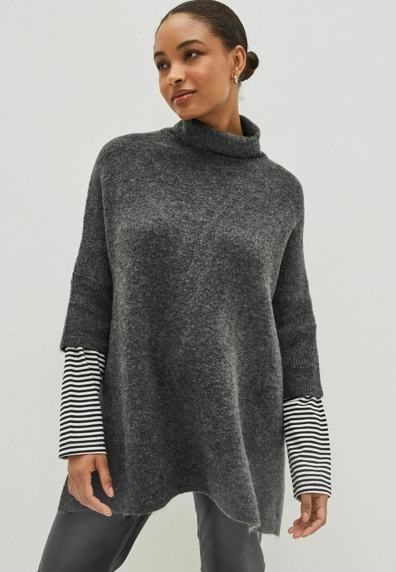 Next PONCHO WITH STRIPE SLEEVE STANDARD – Strickpullover – Charcoal Grey