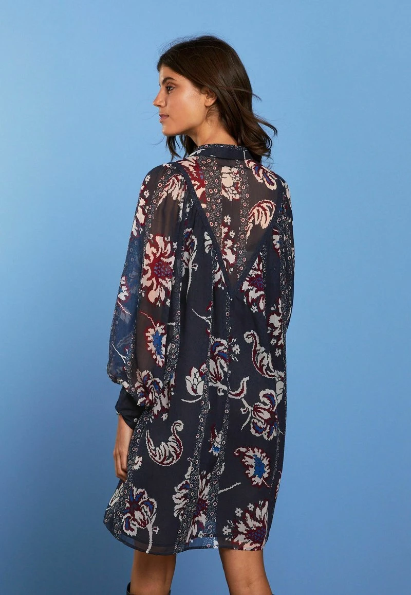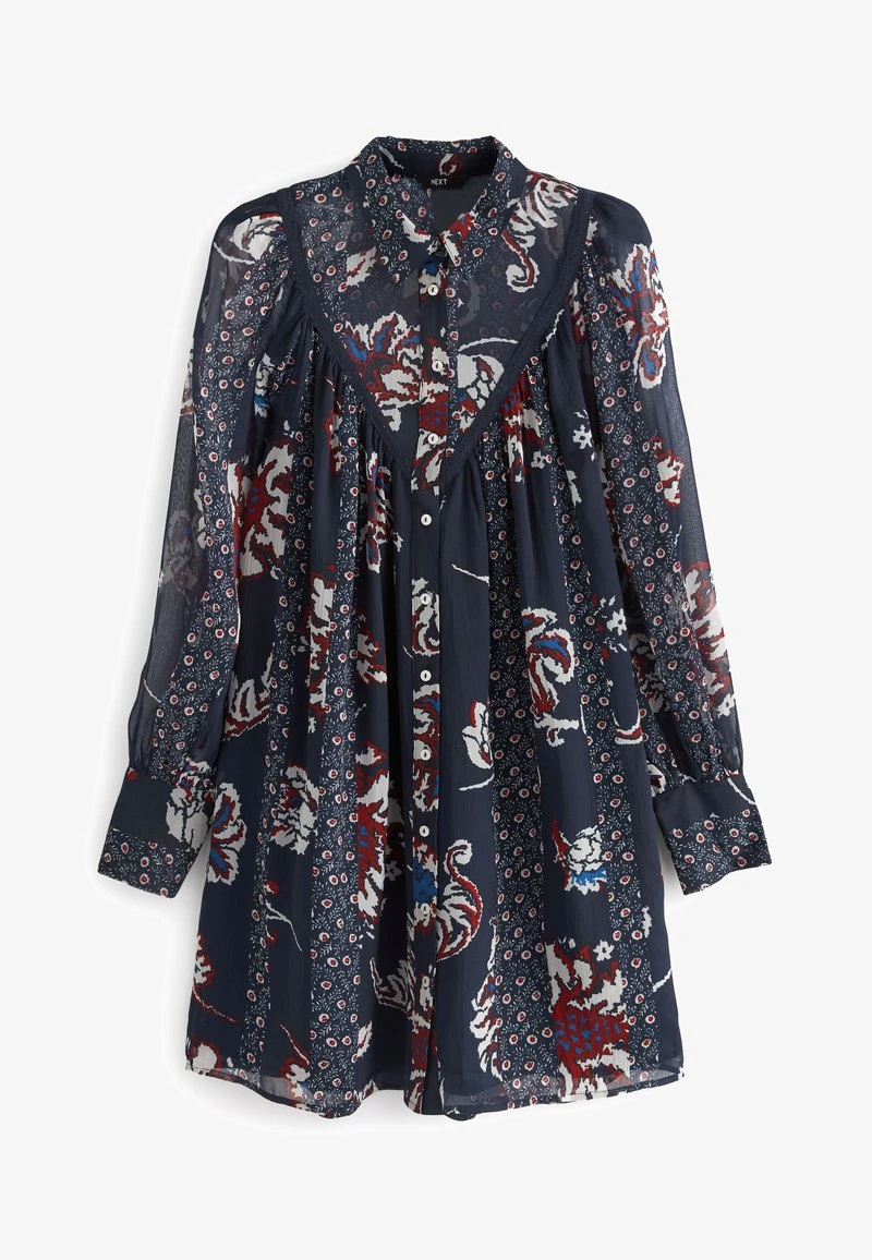 Next SHEER LONG SLEEVE MINI STANDARD – Blusenkleid – Navy Blue Print
