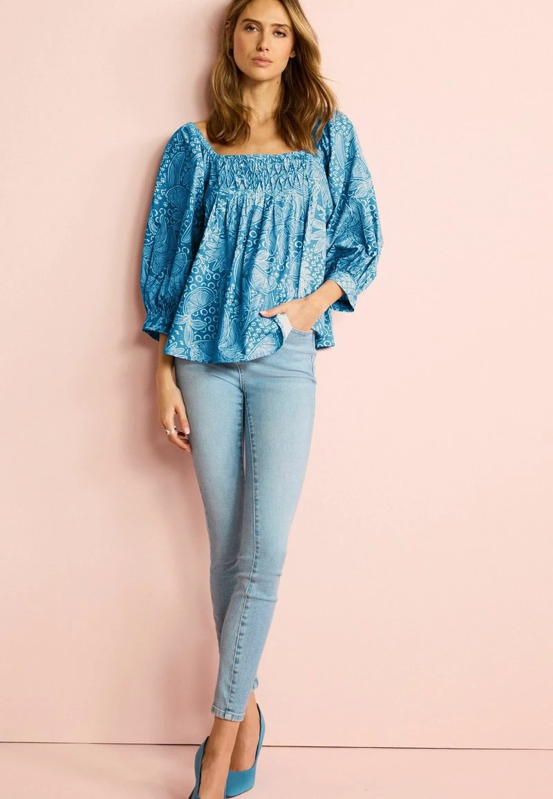 Next SQUARE NECK LONG SLEEVE STANDARD – Bluse – Blue White Print